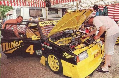 Заканчивая рассказ о кузове, коснемся того, что особенно выделяет машины Miller-Pilot среди других спортивных «восьмерок», — аэродинамического оперения. Комплект состоит из выклеенных из стеклоткани переднего и заднего обтекателей, которые заменяют собой бамперы, боковых порогов и дополнительного заднего спойлера, жестко закрепленного на нижней кромке третьей двери. Кроме последней детали, все эти элементы оперения снимаются и устанавливаются за секунды.