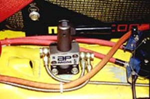 Кран-регулятор давления в контуре задних тормозов При постройке машин команды Miller-Pilot решено было не экспериментировать и сразу пойти проторенным путем. Несмотря на «кусачую» стоимость (около $5000 за комплект) для всех трех машин были закуплены тормозные системы фирмы AP Racing. Они не только улучшают тормозную динамику автомобиля, но и позволяют пилоту настраивать тормоза под индивидуальный стиль управления и даже менять настройки в ходе гонки.