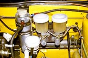 Кроме того, справа от водителя на полу расположен кран-регулятор, действие которого распространяется только на задние колеса. С его помощью водитель регулирует максимальное давление в контуре задних тормозов.